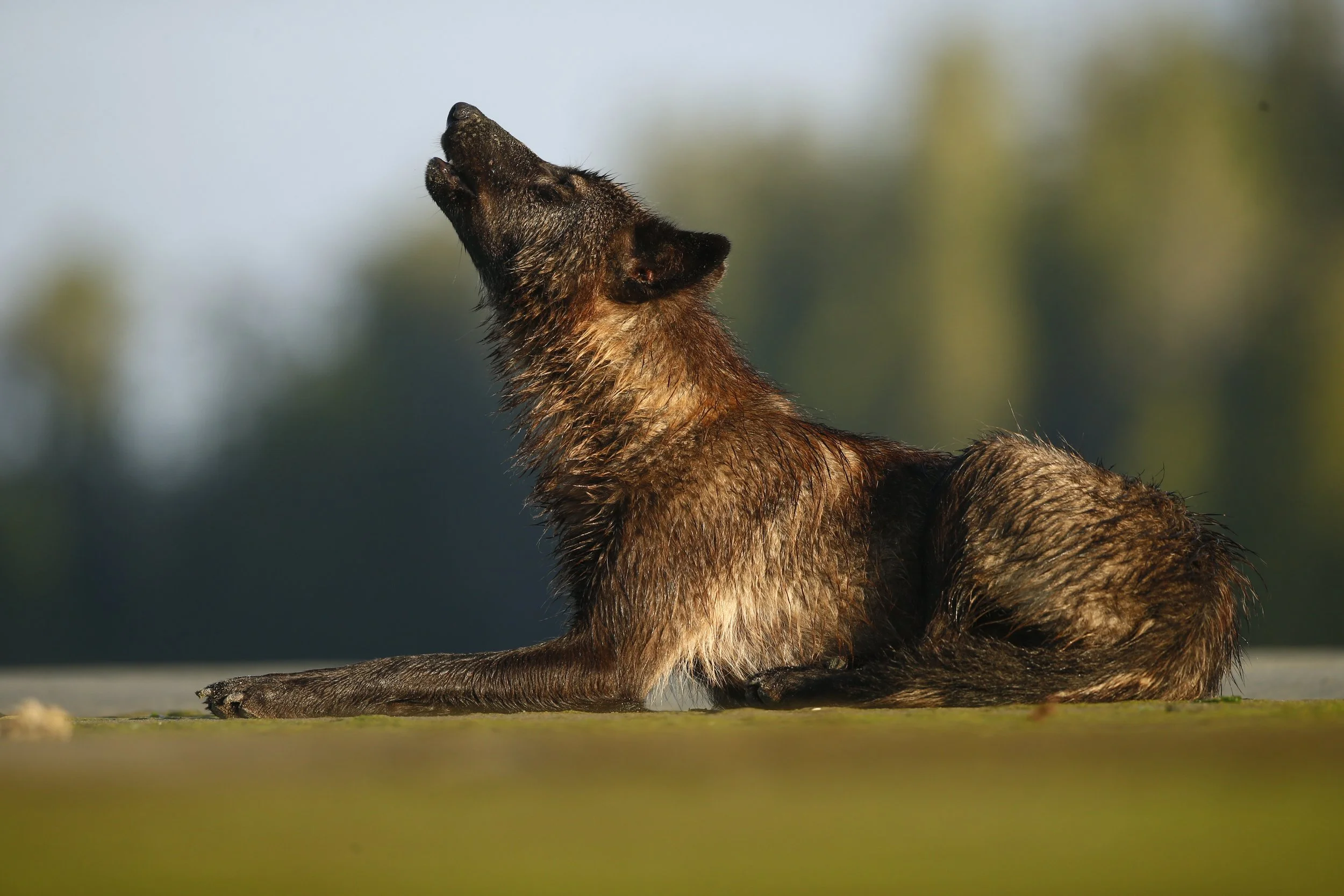During this expedition we plan to spend 7 days in field, we will search for the opportunity of photographing and viewing these unique coastal wolves. We will start our expedition in the small coastal town Prince Rupert, from there we will continue our travel with our privately chartered boat to our final destination. The boat ride to the wolf island takes approximately 3 hours. At the wolf island we will set up our basecamp consisting of a tented camp for sleeping quarters and cooking. It will be a basic set up which can be compared to a camping trip. Our aim is to get the best photo opportunities and get close to the wolves and that one will get only by spending time as close to the wolf area as possible. This set up gives us the possibility to be close to the wolves without disturbing them and also letting them to get used to having us around. Previously we have sometimes even been able to photograph wolves right from our sleeping quarters. One should although not expect to see wolves every day, wolves can be difficult to track and find and there could sometimes be several days with out seeing them. With a lot of patience though there is a very good chance to get unique experiences and close encounters with the wolves in this area. We have worked with the wolves in this area for many years so the wolves has become rather comfortable with us which gives us the chance to get really close to them. We have previously had the opportunity to view the pack with their puppies and sometimes having wolves right next to us being very relaxed which is of course very unique. Although one`s again, as with all wildlife and especially with wolves, one should not expect all this but there is although a good chance. We will spend long day´s waiting and tracking in the field from early morning to late evening and usually in the end it pays off with unique photo opportunities.